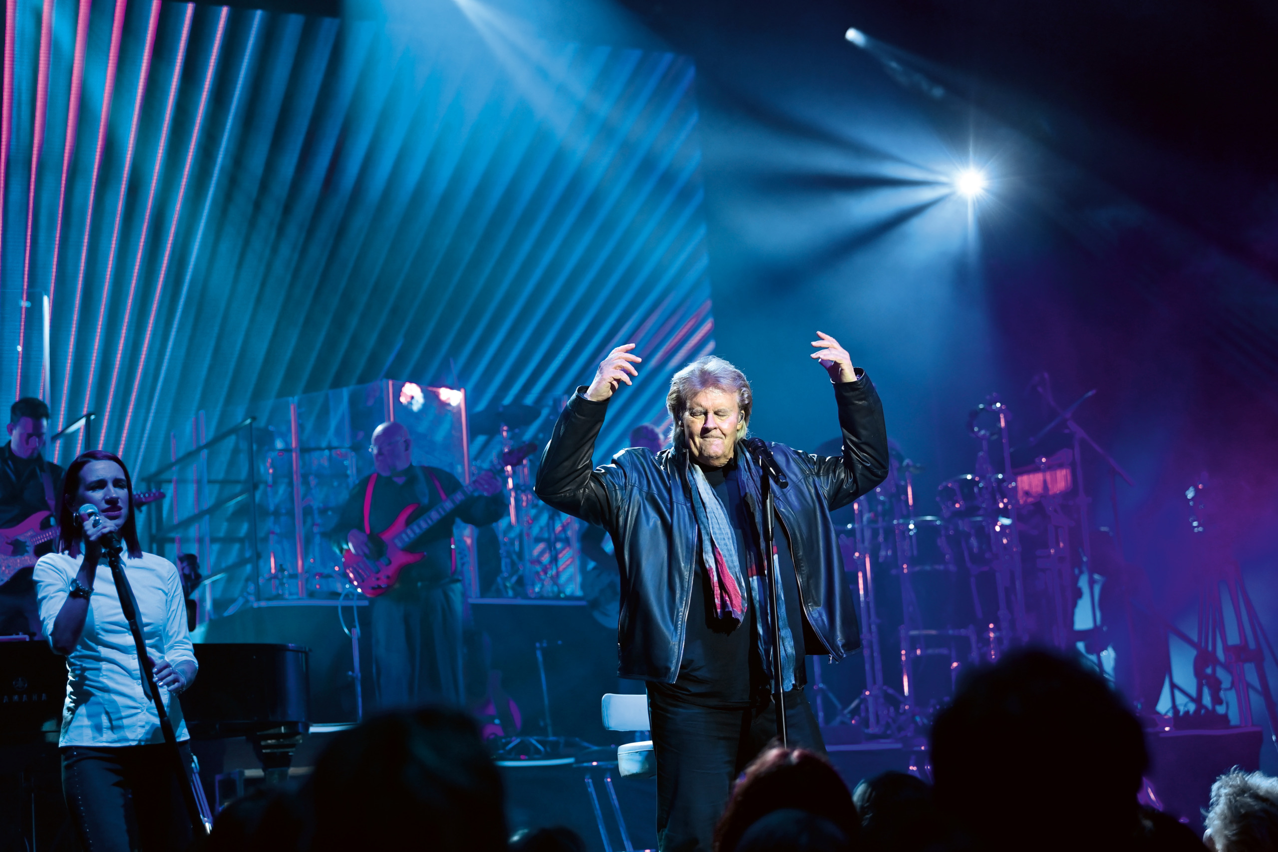 Man hört seine Schritte, das Jubeln wird lauter und lauter – und schon mit dem ersten Takt der Ouvertüre zur „Show meines Lebens“ rollt eine gewaltige Euphoriewelle durch die Arena: Bläser, Streicher, Band und Background-Sängerinnen und -sänger treten in die vorderste Reihe und stellen klar, dass „The Show is Going On“! Auf das erste Auftakt-Medley, in dem auch die „Spuren im Sand“ und „Ti Amo“ aufblitzen, betritt der Star des Abends dann tatsächlich die Bühne und gibt dem Drummer das Zeichen: „… ich sag nur hello again“!