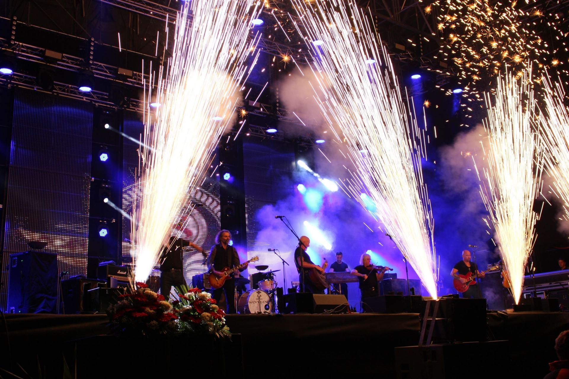 Langsam wurde es dunkel über dem Berg. Da lohnte sich die Pyrotechnik, die Santiano mit an Bord hatte. Gigantisch sah dieses Feuerwerk der Seebären aus Flensburg gerade vom gegenüberliegenden Hang aus. Beeindruckend war auch die Textsicherheit der Schweizer. „Mit dem Gezieten“ und „Bis ans Ende der Welt“ sangen sie mit bei Liedern „Von Liebe, Tod und Freiheit“.